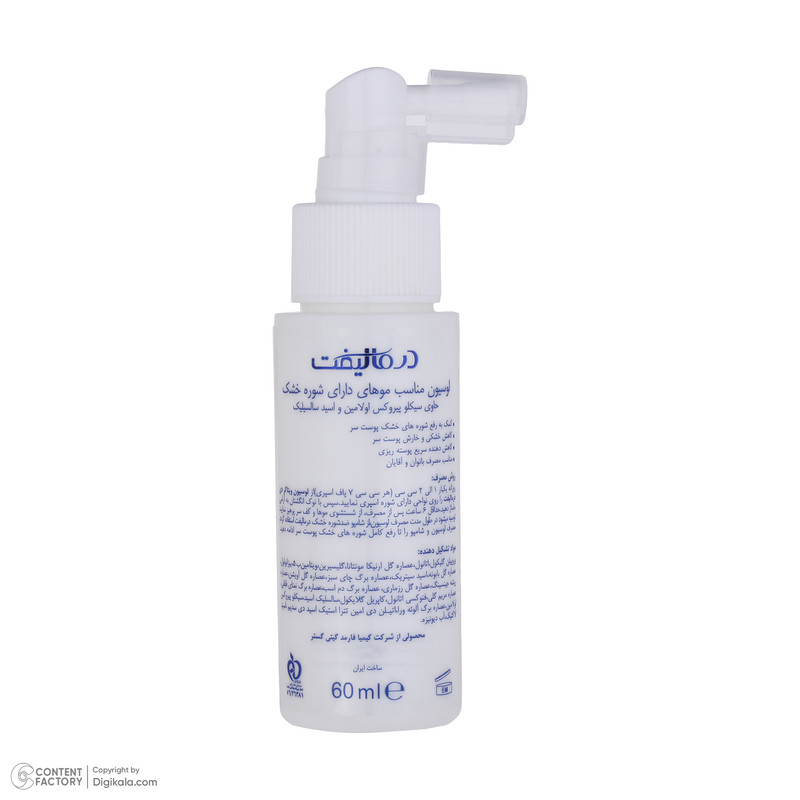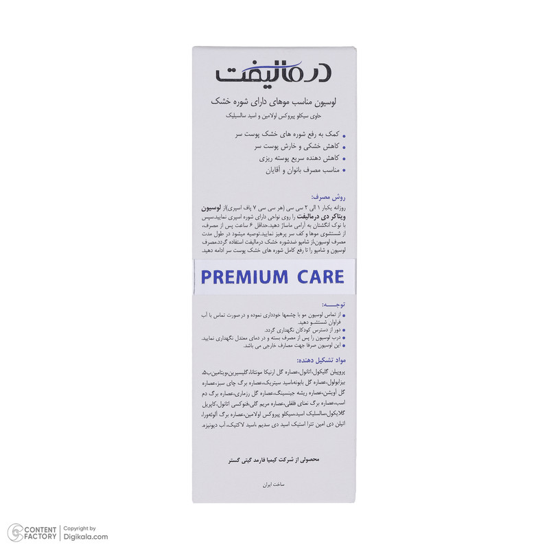 لوسیون مناسب موهای دارای شوره خشک(ویتاکر دی) و کمک به رفع شوره های خشک پوست سر ، کاهش خشکی و خارش پوست سر و کاهش دهنده سریع پوسته ریزی ومناسب مصرف بانوان و آقایان می باشد.