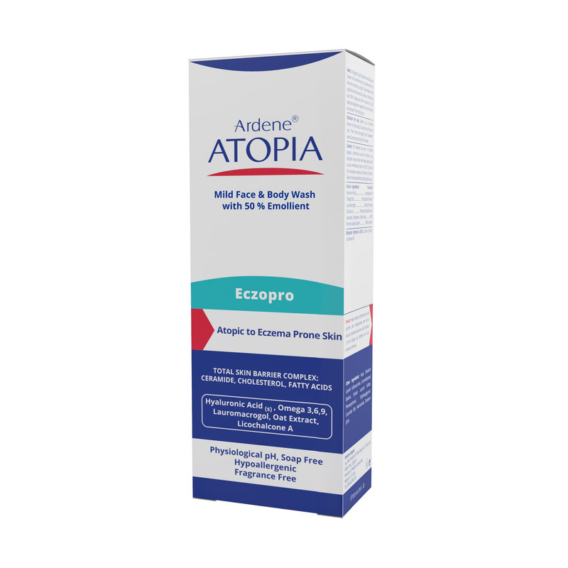 لوسیون شوینده صورت و بدن آردن اتوپیا مدل آتوپیا اگزو پرو جهت شستشوی روزانه صورت و بدن افرادی است که دارای پوست خشک و حساس می باشند. این محصول مناسب حال افرادی است که دچار اگزما و خشکی شدید پوست هستند . این محصول با ترکیباتی نظیر سرامید، کلسترول و اسیدهای چرب موجب تقویت سد دفاعی پوست در برابر خشکی و اگزما می شود. لوسیون شوینده صورت و بدن Eczopro حاوی 50% روغن های نرم کننده، هیالورونیک اسید، امگا 3، 6 و 9 و فاقد مواد صابونی می باشد که باعث تسکین التهابات، قرمزی و خشکی و کشیدگی پوست شده و از خشکی مجدد پوست جلوگیری می کند.