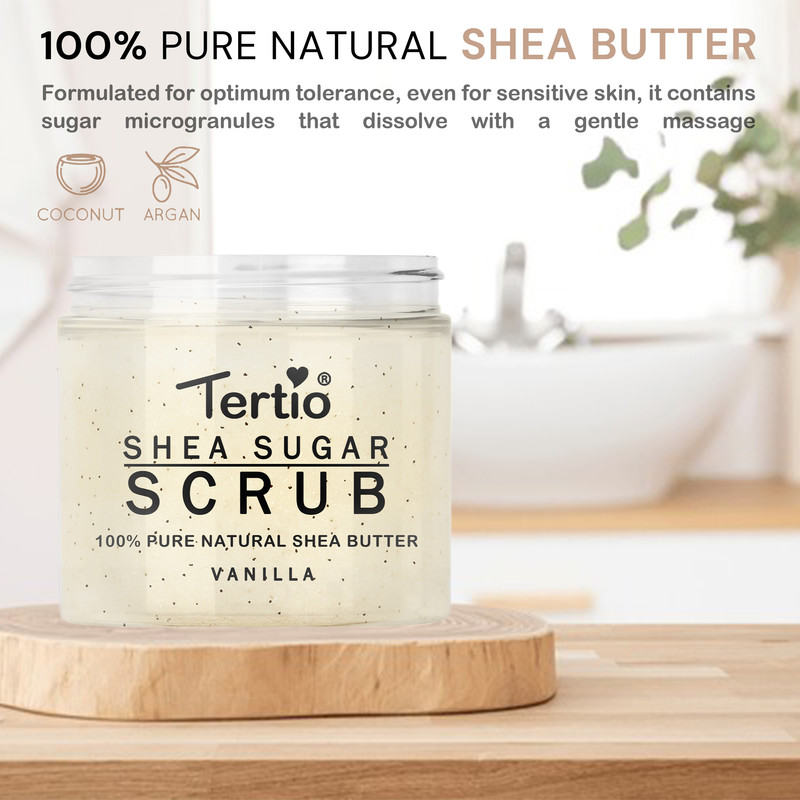 سلولهای مرده پوست، چربیهای طبیعی بدن، استفاده از لوازم آرایشی و گرد و غبار و ذرات آلوده در هوا میتوانند منافذ پوست شما را ببندند. با استفاده از اسکراب شکری لایه بردار پوست ترتیو مدل وانیل شی باتر، میتوانید همه این ذرات را پاک کنید و که باعث می شود پوست شما روشنتر و شفافتر به نظر برسد و احساس تمیزی بیشتری داشته باشید. اسکراب شکری پوست Tertioبرای لایهبرداری پوست بدن طراحی شده و حاوی ذرات ریز و مواد مغذی از جمله شی باتر است که هدف آن از بین بردن سلولهای مرده و بهبود بافت و درخشش پوست است. با استفاده از این اسکراب، پوست نرمتر و لطیفتر شده و نفوذپذیری آن برای محصولات مرطوبکننده افزایش مییابد که باعث بهبود گردش خون شده و احتمال بروز جوشهای زیرپوستی را کاهش مییابد. اسکراب بدن ترتیو حاوی روغنهای آرگان، نارگیل، شی باتر و مواد مرطوبکننده است که به حفظ رطوبت و آبرسانی پوست کمک میکند.