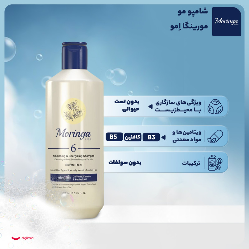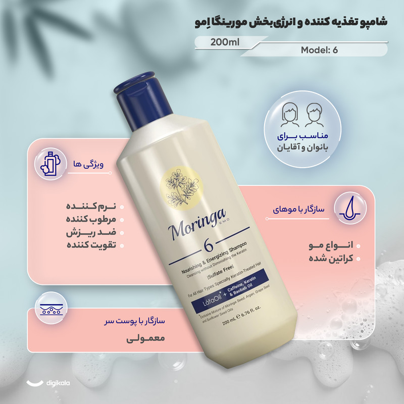 شامپو مو مورینگا امو مدل S06 مناسب برای انواع مو، کراتین شده حجم 200 میلی لیتر