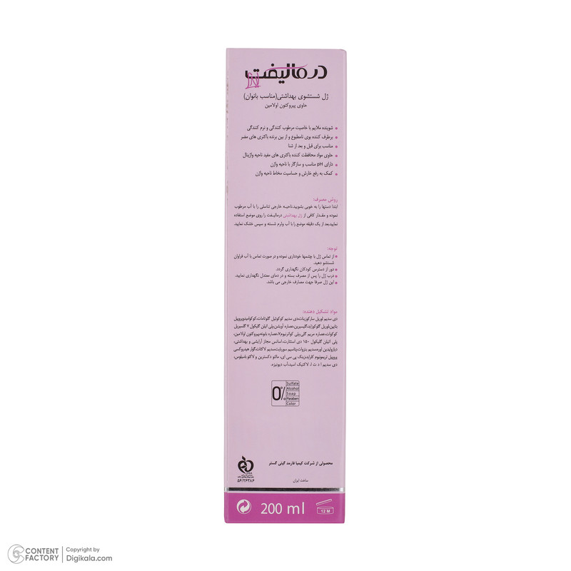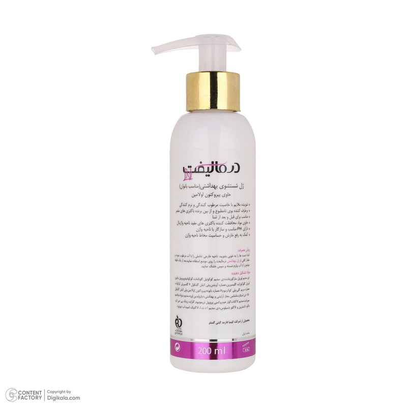 راهنمای استفاده : ابتدا دست ها را به خوبی بشویید.ناحیه خارجی تناسلی را با آب مرطوب نموده و مقدار کافی از ژل بهداشتی درمالیفت را روی موضع استفاده نمایید.بعد از یک دقیقه موضع را با آب ولرم شسته و سپس خشک نمایید