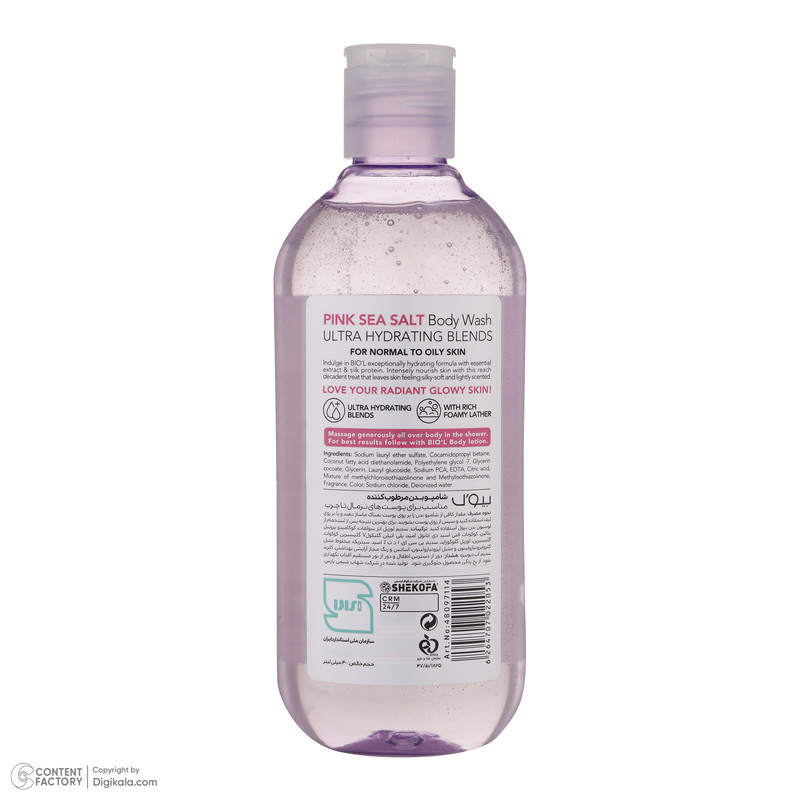 سازگار با نوع پوستترکیبیمناسب برایخانمها و آقایانحجم400 میلیلیترحاویعصاره نمک صورتی دریایینوع شامپو بدنشامپو شستشو