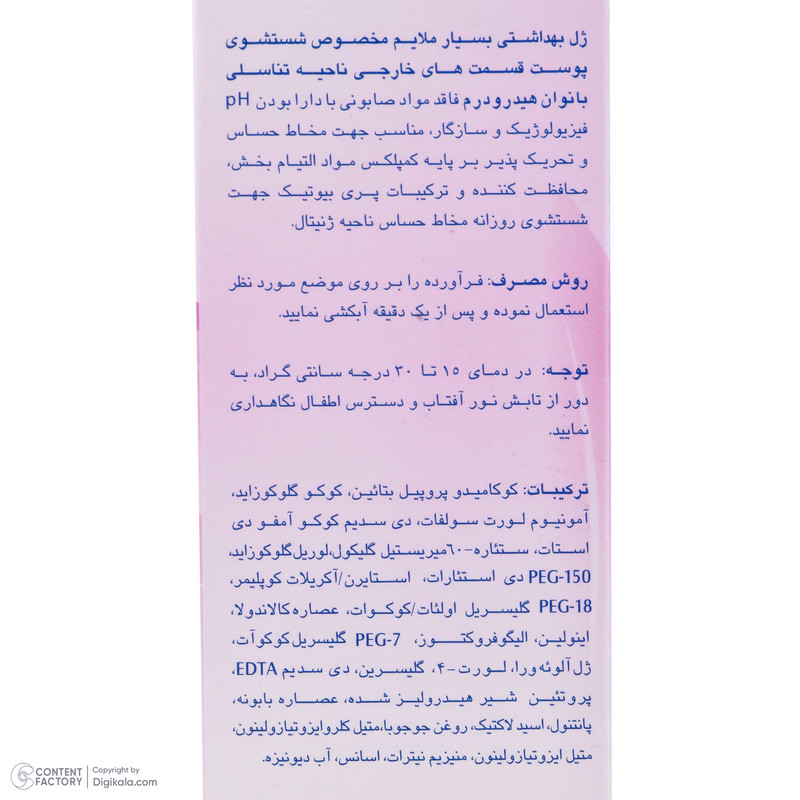 - رفع التهابات و تحریکات ناحیه خارجی - التیام سوزس و قرمزی و خارش ناحیه خارجی فاقد مواد صابونی و پارابن