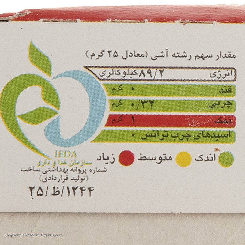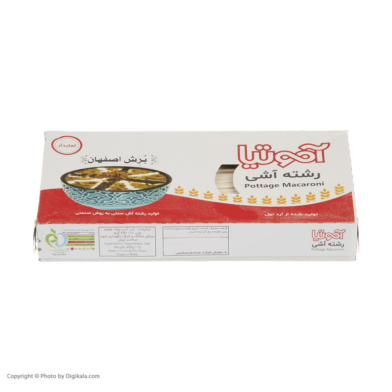 آش رشته یکی از غذاهای مورد علاقه ایرانیان است که از دیرباز تاکنون در سفرههای ایرانی مشاهده میشود. هرچند که پختن آش رشته بسیار پیچیده و زمانبر است، اما مزه خاص و لذتبخش آن بخصوص در روزهای سرد سال افراد را ترغیب میکند تا به سمت آن بروند. رشته آشی از محصولات «آموتیا» از جمله محصولات است که در پختن آش رشته به شما کمک میکند. رشته یکی از مواد اصلی آش است که جزء گروه نانو غلات به شمار میآید. رشته آشی از ترکیب آرد گندم، آب و کمی نمک تهیه شده و سپس خشک میگردد. همچنین رشته حاوی کربوهیدرات و مقداری پروتئین است که در کنار حبوبات میتواند در رشد و ترمیم سلولها نقش مهمی را ایفا کند. این محصول با مقدار 400 گرم در بستهبندی 460 گرمی عرضه میشود و ارزش غذایی هر سهم آن 90 کیلوکالری است.