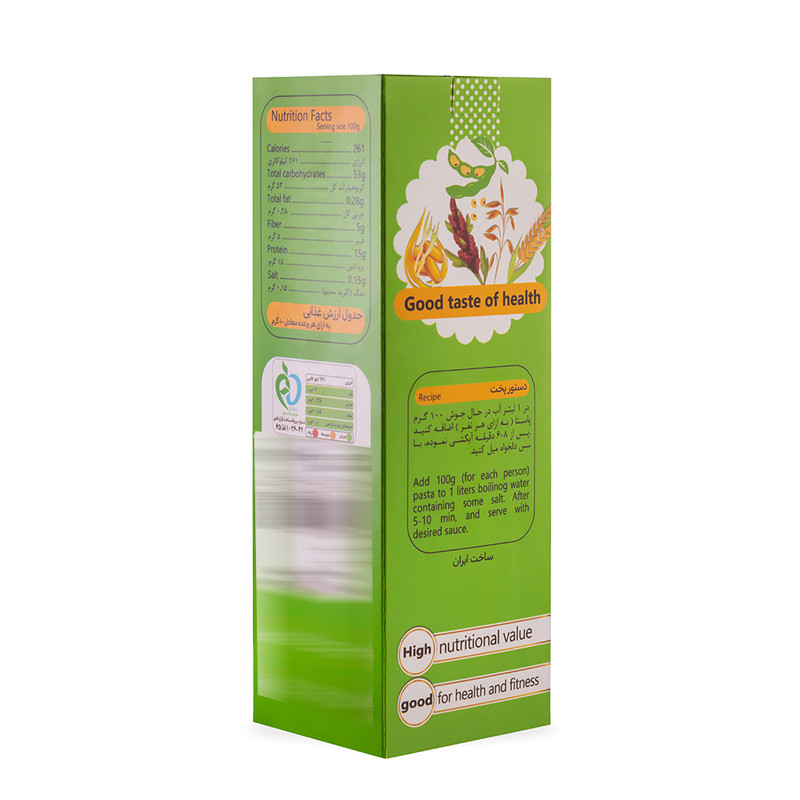 این محصول حاوی منابع غنی پروتئین گیاهی کامل و زود جذب است. ترکیبات این پاستا شامل: پودر ایزوله سویا، آرد جو دوسر، آرد کینوا، پودر جنین گندم، فیبر گندم، آرد جو و آرد سمولینا است. این پاستا علاوه بر وگانهای عزیز برای تمامی اقشاری که به سلامتی و تغذیه خود اهمیت میدهند بسیار مفید است. توجه فرمایید این پاستا به دلیل نداشتن گلوتن صنعتی (که برای سلامتی مضر است) زمان پخت کوتاه تری نسبت به پاستاهای معمولی دارد.
