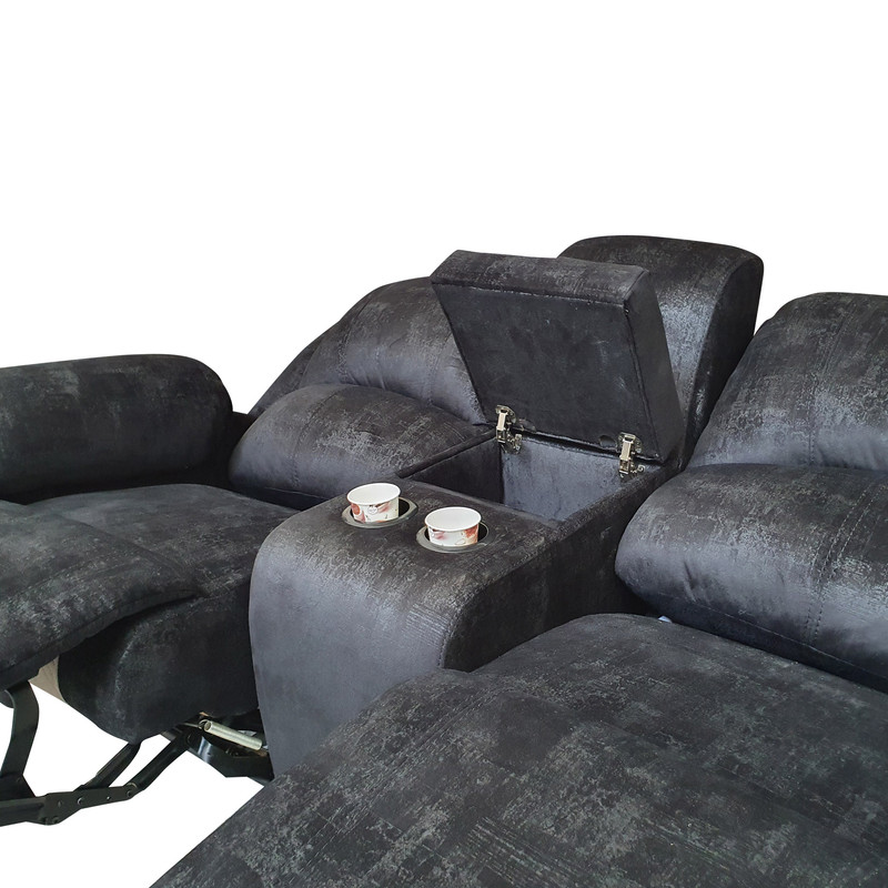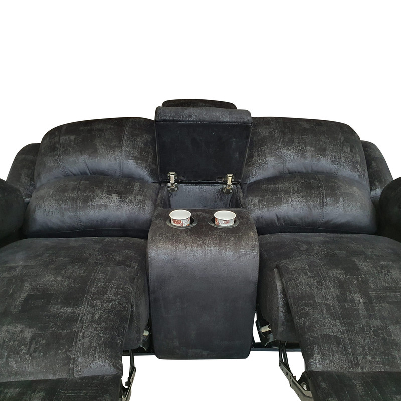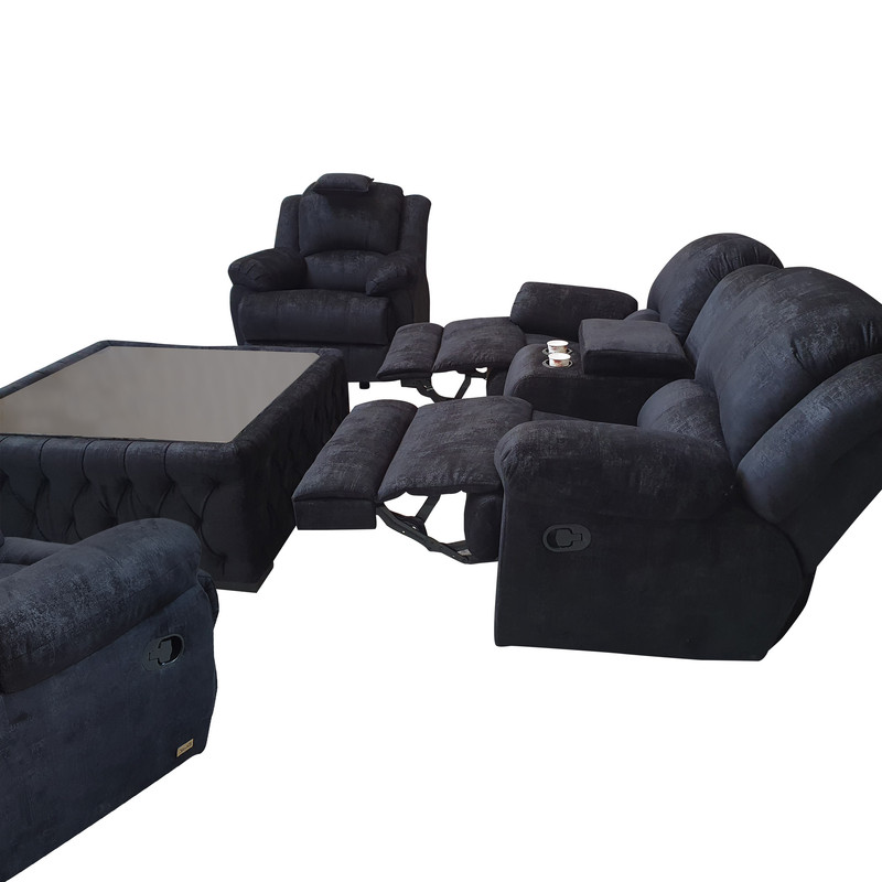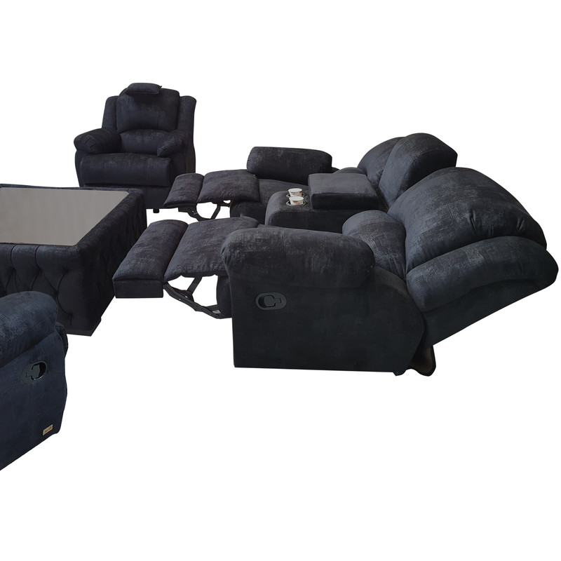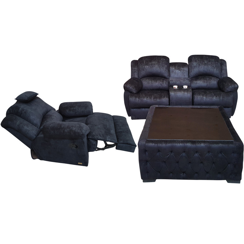 همراه با مبل میز جلو مبلی که روی آن شیشه قرار گرفته ، و کنسولی که مابین دو صندلی تعبیه شده ، بسیار کاربردی میباشد ؛ تکیهگاه دست ، محفظهای برای وسایل و دارای جای لیوان میباشد.