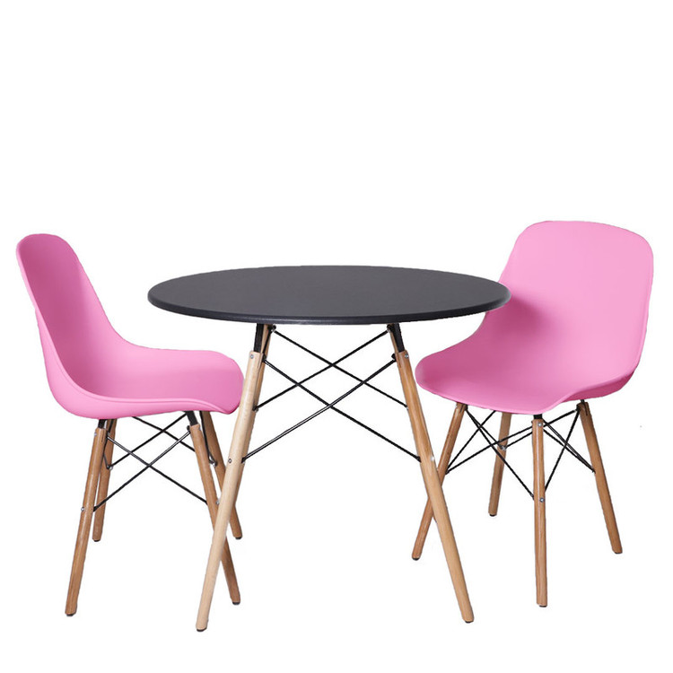 جنس کفی صندلی از PPR40 پلی پروپیلن نشکن میز گرد مشکی 85 سانتیمتر MDF کره ای با روکش ضدخش و ضدآب پایه ها از جنس چوب راش گرجستان و فلز ، دارای ته پایه جهت جلوگیری از سایش برروی پارکت ، دارای استراکچرریگلاژور شونده جهت ریگلاژ صندلی