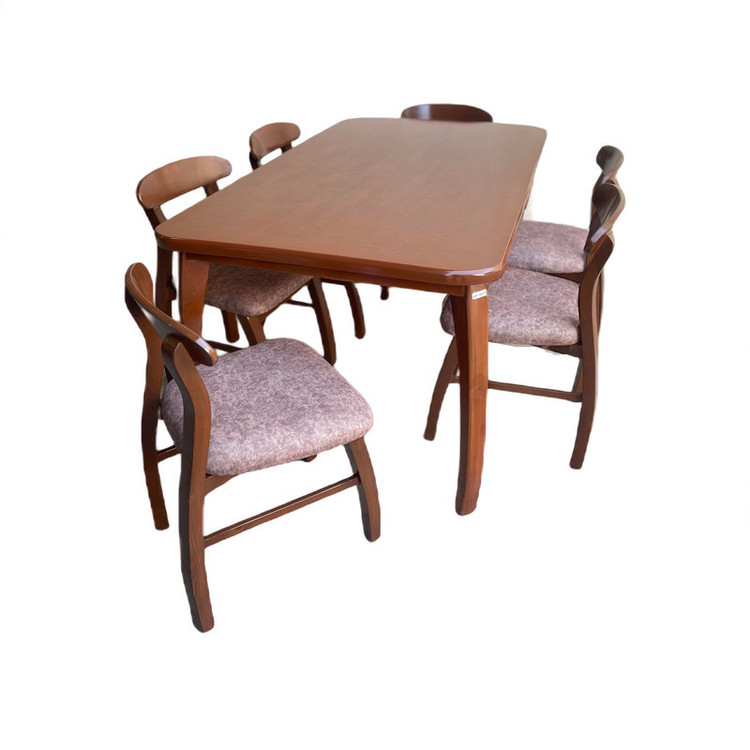 میز مستطیل مدل بوگاتی رنگ چوب ثابت گردویی پارچه طبق تنوع موجود قابل انتخاب