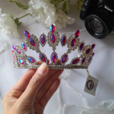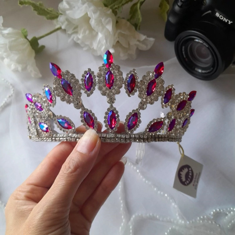 تاج عروس تمام سنگ اصل کیفیت AAA.,ارتفاع تاج در مرکز 7 سانت.قابل سفارش در رنگ دلخواه.این رنگ سرخابی موجود نیست.رنگهای سبز .آبی.قرمز.صورتی .هفترنگ موجود هستند