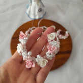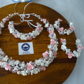 گوشواره ساخته شده با مروارید و کریستال درجه یک.و شکوفه های دستساز.که در صورت تمایل رنگ شکوفه ها به دلخواه شما میتونه تغییر کنه.