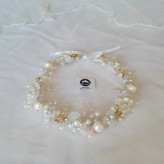 تاج گل سر عروس.خیلی شیک و خاص.با ترکیب سفید و مقداری صورتی ملیح و کمرنگ.قابل سفارش در رنگ دلخواه