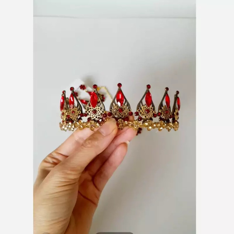 تاج قرمز .قیمت برای تاج تک هست.در صورتیکه با گردنبند و گوشواره خواستید آیتمش در غرفه موجود هست