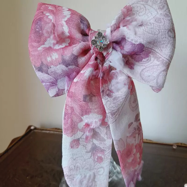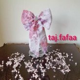 پاپیون صورتی طرحدار.پشت پاپیون گیره وصله که براحتی موهاتون با گیره پاپیون میتونید ببندید.با لباس سفید و لباس صورتی براحتی ست کنید