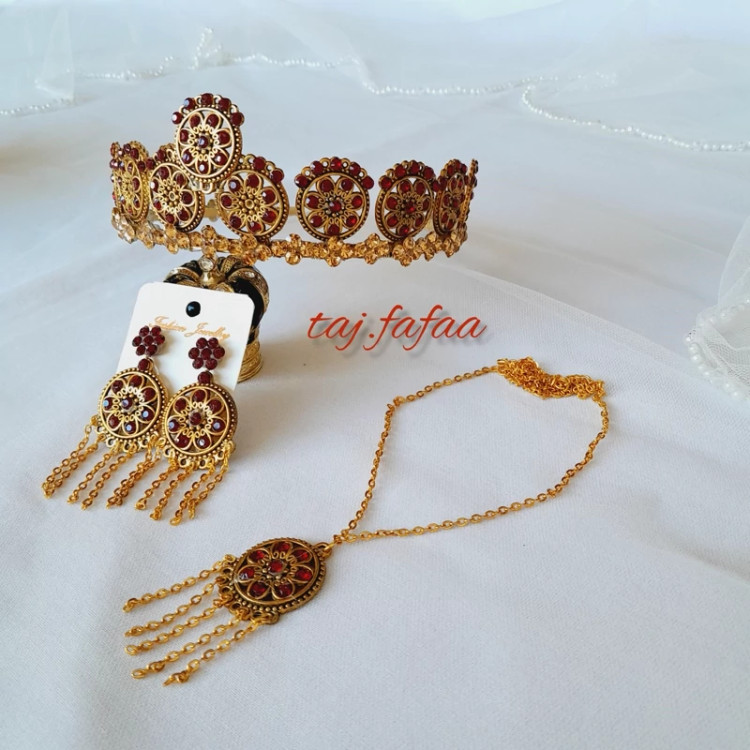 تاج سنتی عروس همراه با گوشواره و گردنبند ست تاج.جنس فلز.زیبا و جذاب ..........