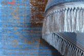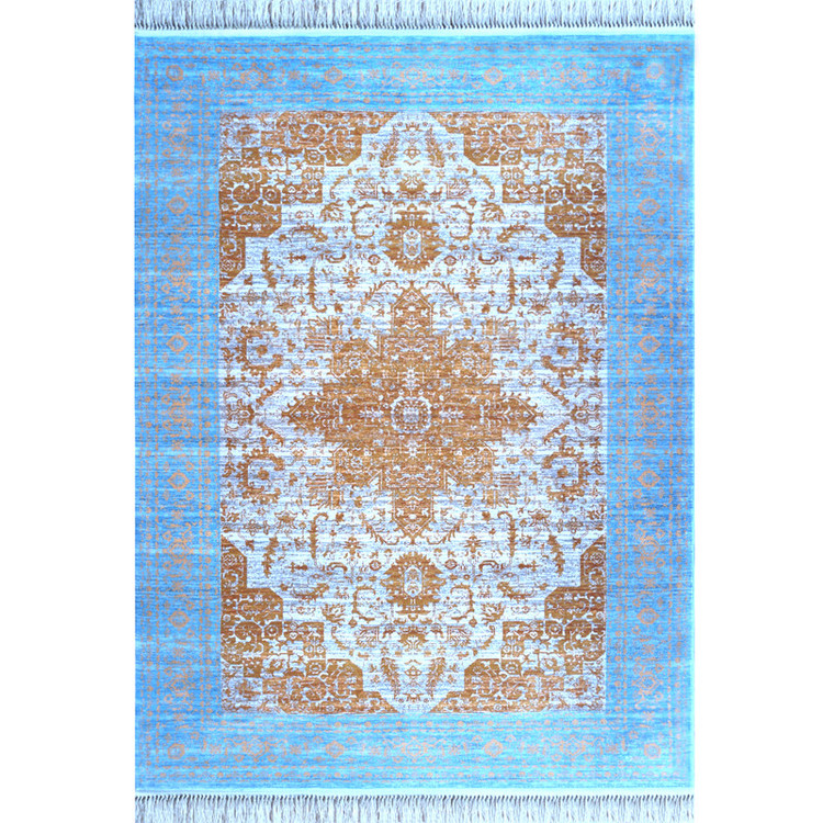 فرش ماشینی رادین طرح پتینه هریس زمینه طوسی حاشیه آبی