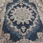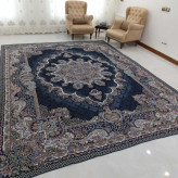 روفرشی 12 متری مخمل زرک دار یا براق - ضخامت متوسط طرح دیبا رنگ سرمه ای برند وکیل بافت یزد کد نیلوفر 005 - روفرشی 12متری