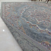 روفرشی 12 متری مخمل زرکدار و براق- ضخامت متوسط طرح دیبا رنگ طوسی برند وکیل بافت یزد کد نیلوفر 005 - روفرشی 12متری