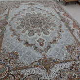 روفرشی 12 متری مخمل زرک دار و براق- ضخامت متوسط طرح دیبا رنگ کرم برند وکیل بافت (زرین)یزد کد نیلوفر 005 - روفرشی 12متری