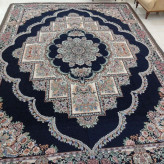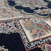 روفرشی 9 متری مخمل زرک دار یا براق - ضخامت متوسط طرح حوض نقره رنگ سرمه ای برند وکیل بافت یزدکد نیلوفر 004- روفرشی 9متری