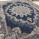 روفرشی 6 متری مخمل زرک دار یا براق - ضخامت متوسط طرح دیبا رنگ سرمه ای برند وکیل بافت یزد کد نیلوفر 005 - روفرشی 6متری