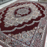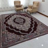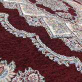 روفرشی 9 متری مخمل زرک دار یا براق - ضخامت متوسط طرح حوض نقره رنگ زرشکی برند وکیل بافت یزد کد نیلوفر 004 - روفرشی 9متری