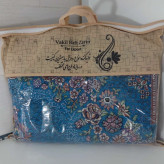 روفرشی 12 متری مخمل زرک دار یا براق - ضخامت متوسط طرح باغ بهشت آبی فیروزه برند وکیل بافت یزد کد نیلوفر001- روفرشی 12متری