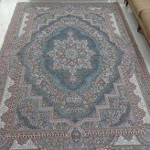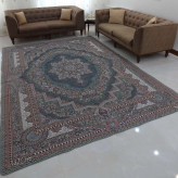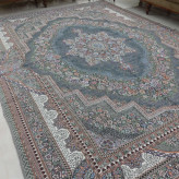 روفرشی 12 متری مخمل زرک دار یا براق - ضخامت متوسط طرح باغ بهشت رنگ طوسی برند وکیل بافت یزد کد نیلوفر 001- روفرشی 12متری