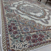 روفرشی 3 متری مخمل زرک دار یا براق - ضخامت متوسط طرح حوض نقره رنگ کرم برند وکیل بافت یزد کد نیلوفر 004 - روفرشی 3متری