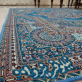 روفرشی 3 متری مخمل زرک دار و براق - ضخامت متوسط طرح باغ بهشت آبی فیروزه برند وکیل بافت یزد کد نیلوفر 001 - روفرشی 3متری