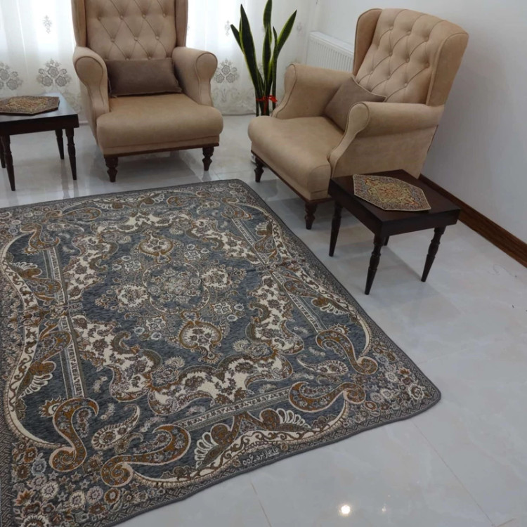 روفرشی 3 متری مخمل دورو ( 2رو ) - ضخامت متوسط و نرم برند وکیل بافت(زرین) یزد طرح نسترن کد006 رنگ طوسی- روفرشی 3متری