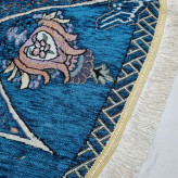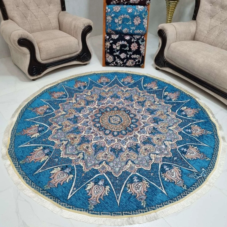 رومیزی و روفرشی گرد - قطر 2 متر - مخمل زرک دار - وکیل بافت(زرین) یزد- طرح خورشید- رنگ آبی فیروزه