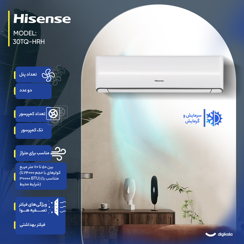 اگر به دنبال کولر گازی با کیفیت و قدرت خنک کنندگی عالی هستید، کولر گازی هایسنس مدل HRH-30TQ گزینه ایدهآلی است. هایسنس یکی از برترین برندهای تولیدکننده کولر گازی در جهان است که محصولات مطمئن و با کیفیتی را عرضه میکند. این محصول با داشتن برخی از ویژگیهای برجسته، توانسته است به یکی از محبوبترین کولرهای گازی تبدیل شود: دور ثابت، کم مصرف، کمپرسور روتاری و تک پنل بودن. با توجه به اینورتر 300 که این محصول دارد، میتوانید از کیفیت خنک کنندگی بالایی برخوردار شوید. همچنین، این کولر گازی به صورت اسپلیت عرضهشدهاست که باعث میشود نصب آن بر روی دیوار بسیار اسان باشد. در نهایت، میتوان گفت که این محصول با توجه به قیمت مناسب و کیفیت بالایی که دارد، گزینه بسیار خوبی برای خنک کردن منزل یا محل کار شما است.