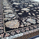 روفرشی 3 متری شانل ابریشم ضخیم یکرو طرح افشان کد گلنگار 100 رنگ سرمه ای برند وکیل بافت یزد