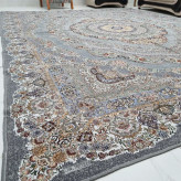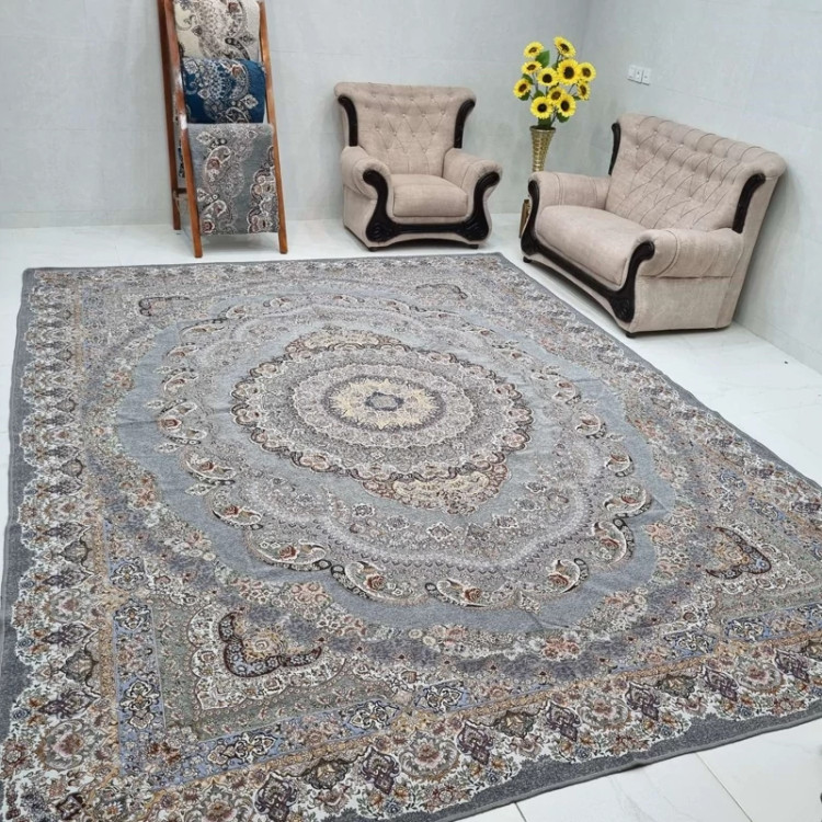 روفرشی 12 متری شانل ابریشم ضخیم -ارسال رایگان- یکرو طرح درخشان کد گلنگار 101 رنگ طوسی برند وکیل بافت یزد