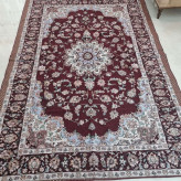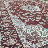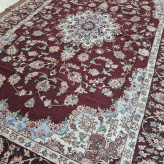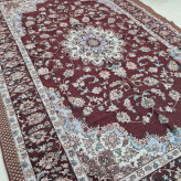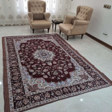 روفرشی 6 متری مخمل زرک دار ضخیم طرح نایینی رنگ زرشکی برند وکیل بافت (زرین) یزد کد گلنگار 500 - روفرشی 6متری