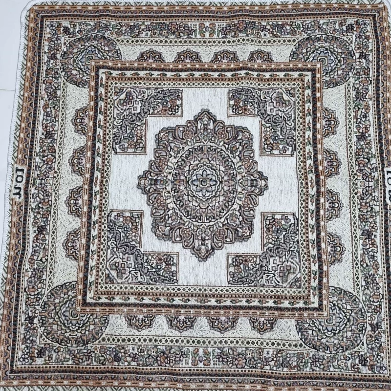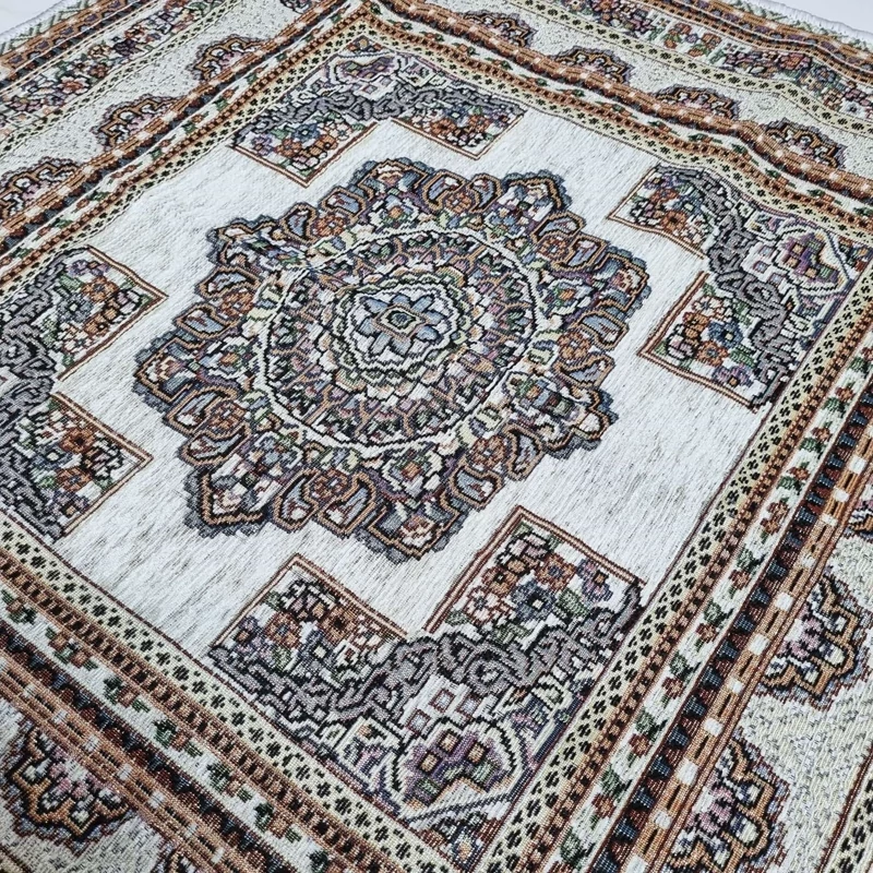 روفرشی 1 متری مخمل زرک دار و براق رنگ کرم- ضخامت متوسط طرح باغ بهشت وکیل بافت(زرین) یزد- روفرشی یک متری