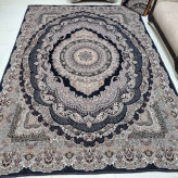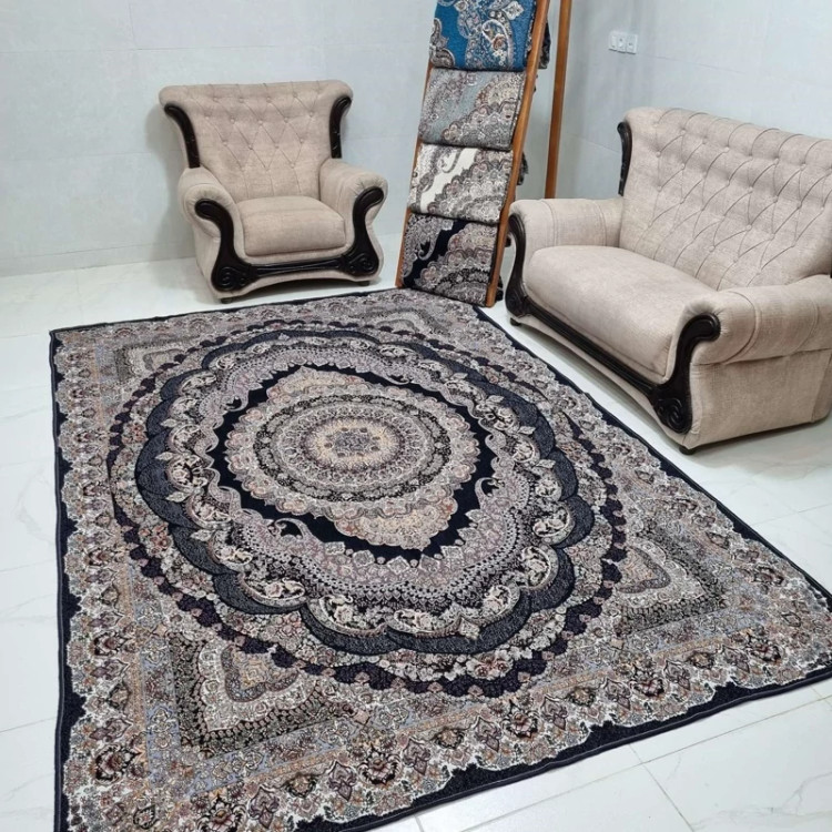روفرشی 6 متری شانل ابریشم ضخیم یکرو طرح درخشان کد گلنگار 101 رنگ سرمه ای برند وکیل بافت یزد