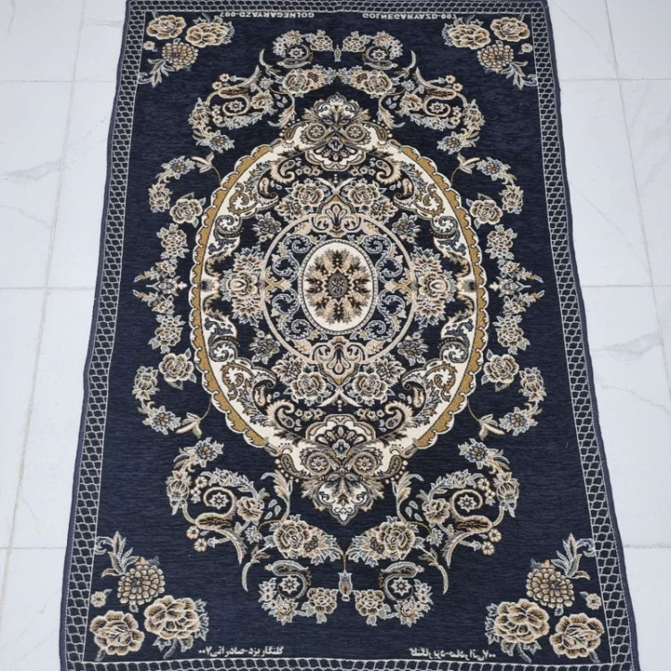 روفرشی 1/5 متری مخمل دورو ( 2رو) ضخامت متوسط طرح گلنگارکد007رنگ سرمه ای برند وکیل بافت یزد روفرشی یک ونیم متری، 1.5 متری