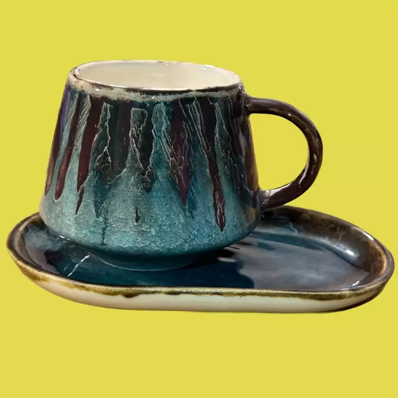 فنجان و نعلبکی قهوه دستساز آن یک اثر هنری اصیل است که تجربه نوشیدن روزانهتان را به سطحی متفاوت و خاص میبرد. طراحی منحصربهفرد آن با الهام از فرمهای طبیعی و ارگانیک، احساس لمس دلپذیری را به شما هدیه میدهد. سطح نرم و لعابدار این ماگ، همراه با رنگهای گرم و دلنشین، تجربهای آرامشبخش را به هر جرعه نوشیدنی شما اضافه میکند. هر ماگ به دقت و با دست ساخته شده و بنابراین هرکدام داستانی منحصر به خود دارد؛ هیچ دو ماگی دقیقاً شبیه هم نیستند. این ماگ خمرهای با ظرفیت مناسب، به گونهای طراحی شده که نوشیدنی شما را برای مدت بیشتری گرم نگه دارد و فرم ارگونومیک آن، نه تنها در دست گرفتنش را راحت میکند، بلکه حس لذتبخشی از نوشیدن به شما میدهد.