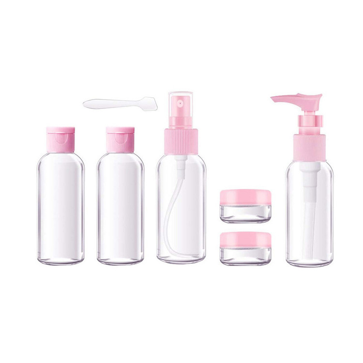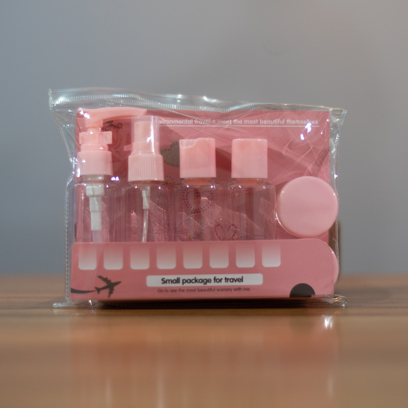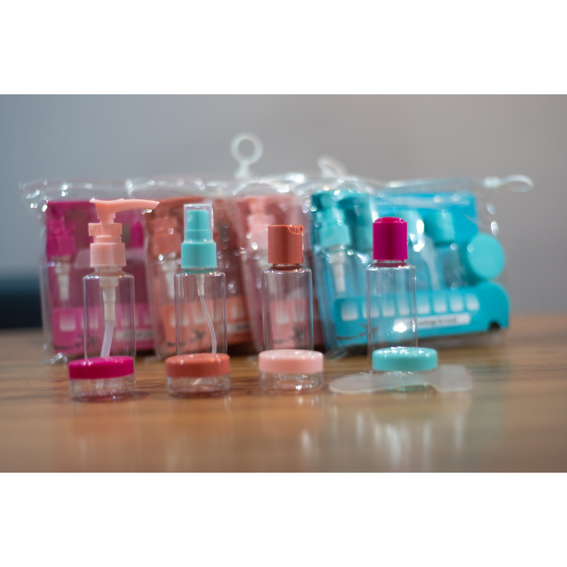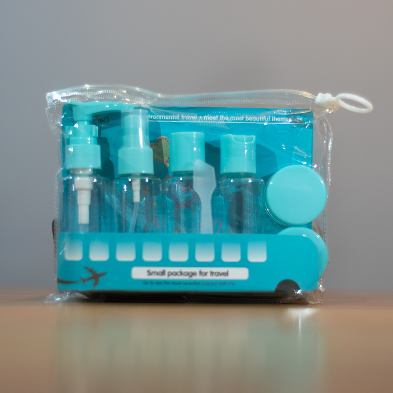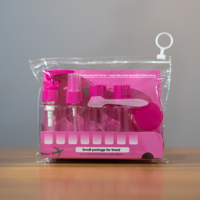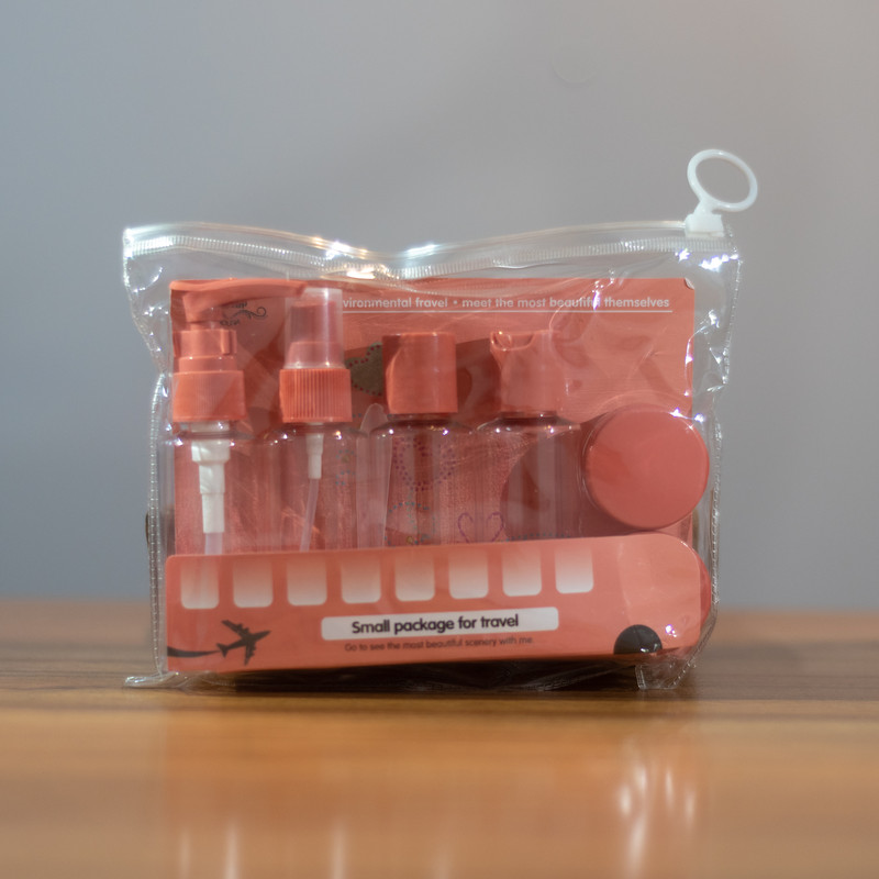 8 تکهای شامل یک عدد بطری پمپی، یک بطری اسپری، دو عدد بطری در دکمهای. مناسب برای سفر و جابجایی لوازم آرایشی در کیف و جیب.دارای بگ پلاستیکی زیپ دار برای بسته بندی راحت.
