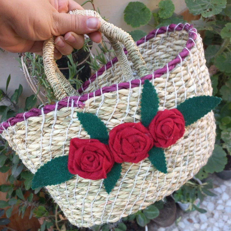 ساک حصیری جذاب مناسب پیکنیک در سایز بزرگ موجود شد با گل های رنگارنگ
