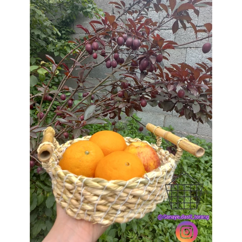 سبد حصیری .سبد .سبد حصیری با دسته ی بامبو