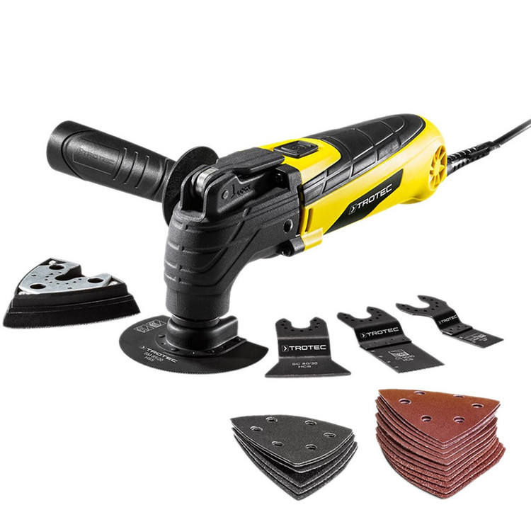 محصول فوق یکی از ابزارهای برقی چندکاره محسوب میشود که حتی افراد غیر حرفهای نیز میتوانند بهراحتی با آن کار کنند. در این دستگاه انجام کارها با حرکت بسیار سریع و ریز تیغه انجام میشود. این موضوع موجب شده تا مانند ارههای دیسکی با تیغهای چرخان روبهرو نباشیم و امنیت کاربر در حین کار بالا رود. این محصول توانی 300 واتی داشته و با کمک کابل برق 2 متری خود به برق شهر متصل میشود. یکی از ویژگیهای مثبت این محصول قابلیت کنترل سرعت حرکت آن است. کاربر میتواند با توجه به نیاز خود این سرعت را در بازهای بین 15000 تا 21000 حرکت در دقیقه تنظیم کند. تعویض ابزارهایی که میتوان روی این دستگاه همه کاره نصب کرد نیز به آسانی انجام میشود. با کمک این ابزارها کاربر میتواند سطوح را بریده، سنباده زده و صیقل دهد. برای این منظور 24 ابزار قابل نصب روی محصول عرضه شده است. زاویهی تیغهی نصب شده روی این دستگاه نیز قابل تغییر است تا کاربر بتواند در حالتهای مختلف از این محصول استفاده کند. این ابزار همه کاره را شرکت «تروتک» تحت عنوان مدل (PMTS 10-230v) به بازار عرضه میکند.