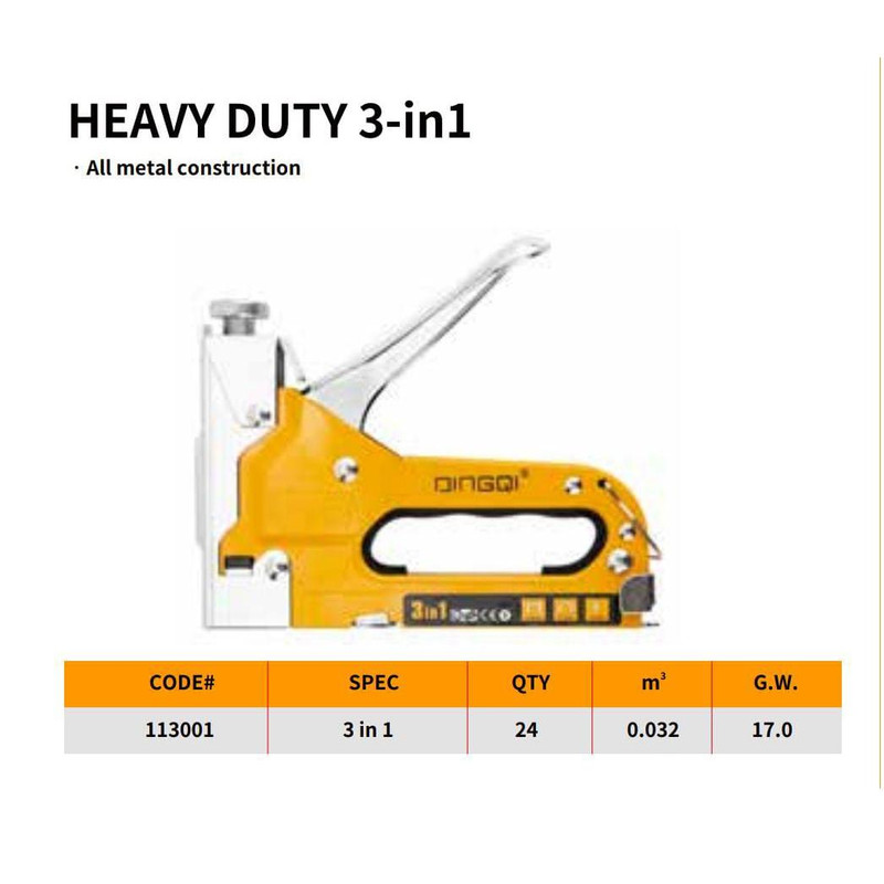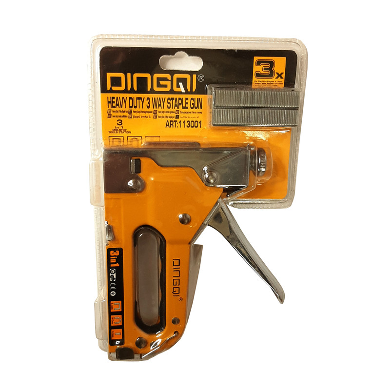 منگنه کوب دستی DINGQI محصولی فوق العاده است که 3 دستگاه را در یک دستگاه گنجانده است.منگنه کوب و میخ یو شکل و میخ کوب همه در یک دستگاه! این دستگاه علاوه بر منگنه توانایی استفاده از میخ را هم دارا می باشد. توانایی دیگر این دستگاه استفاده از میخ های یو شگل برای نگه داشتن چیز هایی همچون سیم می باشد.طراحی خاص این محصول این امکانات را به این دستگاه می دهد . این محصول یکی از تولیدات پر فروش و با کیفیت بازار به حساب می آید .