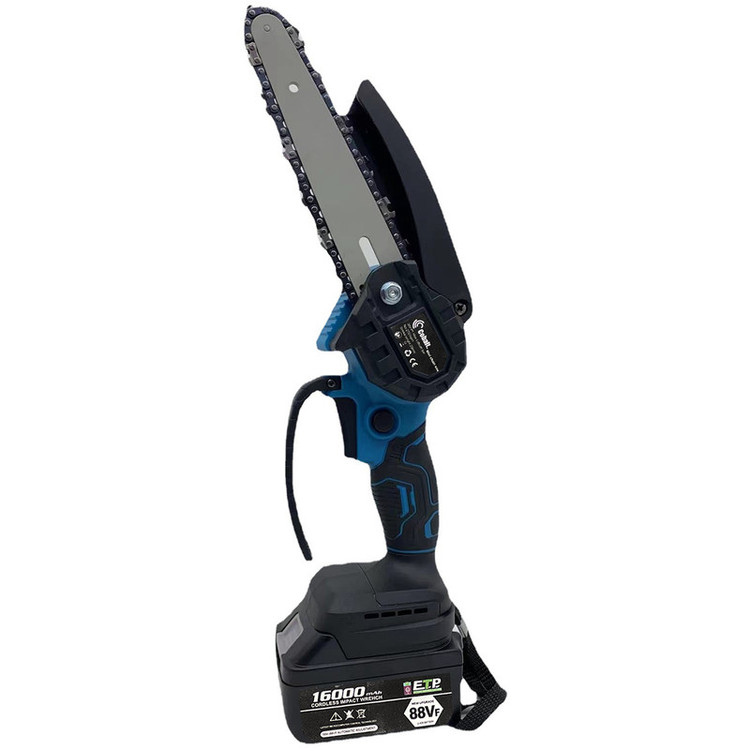 زنجیر 2عدد باتری قابل شارژ 16000 میلی آمپر پیچ گوشتی تنظیم شل و سفتی زنجیر آچار باز کردن پیچ طلق محافظ زنجیر شارژر باتری ریل 18 سانتی دستگاه