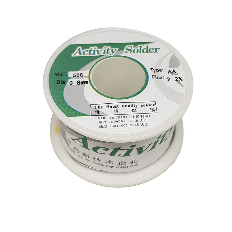 - سیم لحیم بسته 50 گرمی - وزن خالص سیم لحیم تقریبا 45 گرم - قطر سیم 0.8 میلیمتر - آلیاژ 63% قلع و 37% سرب - کانال مرکزی سیم حاوی روغن لحیم