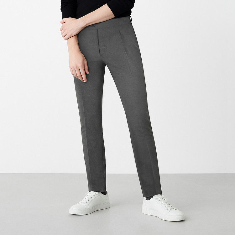 شلوار مردانه پارچه ای استایل Slim-Fit تک پیله دارای سگک استیل پیش کار تک دکمه دارای 4٪ الاستین جهت راحتی بیشتر