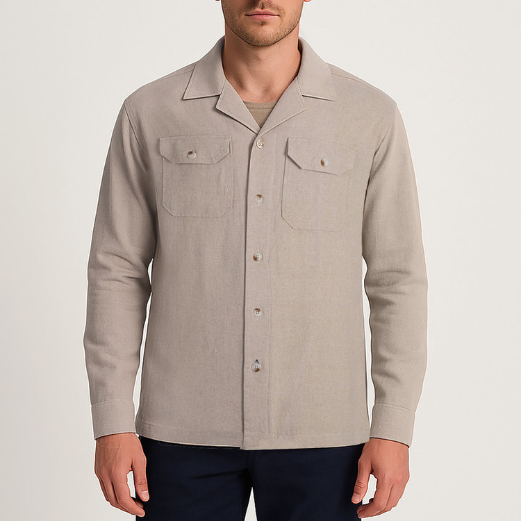 پیراهن آستین بلند یقه برگردان مردانه کروم مدل لینن 2410101