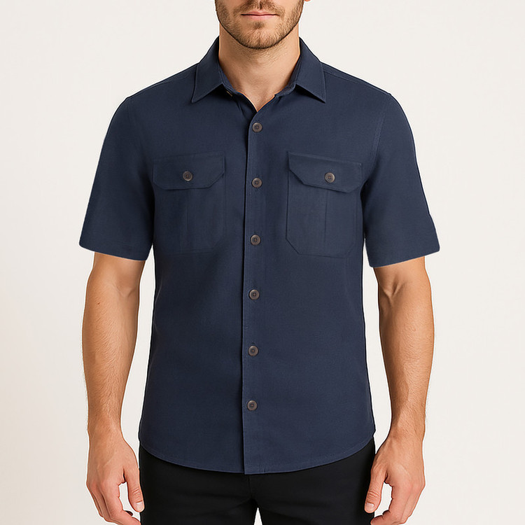 پیراهن مردانه آستین کوتاه پارچه تهیه شده از ۱۰۰٪ الیاف لینن استایل Comfort-Fit دارای دو جیب روی سینه خنک و تنفس پذیر ثبات رنگ در شستشو