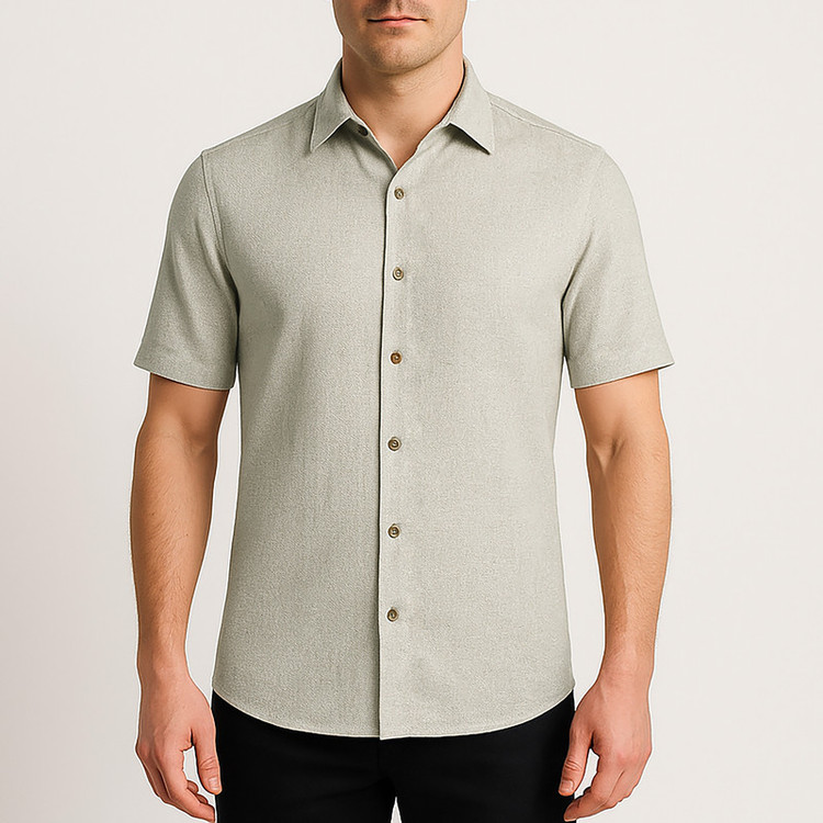 پیراهن مردانه آستین کوتاه پارچه ترکیبی از الیاف پنبه و لینن خنک و تنفس پذیر استایل Slim-Fit ثبات رنگ در شستشو